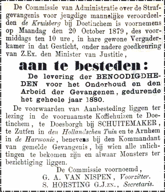 1887: Het is wenselijk dat veroordeelde een eenzame opsluiting wordt opgelegd in de Kruisberg.